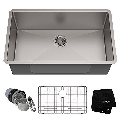 The KRAUS Standart PRO stainless steel kitchen sink features a sleek modern design with easy-to-clean rounded corners. Made with heavy-duty TRU16 gauge stainless steel for long-lasting durability with great resistance to corrosion, dents, and damage. Undermount sink installation creates a clean transition from sink to countertop and simplifies cleanup by letting you wipe water and crumbs right into the sink. Large NoiseDefend sound dampening pads help absorb noise and vibration. Smooth satin finish and rounded corners make this stainless steel sink easy to keep clean, with channel grooves for easy draining. Comes with protective bottom grid, drain assembly with strainer, template, and mounting hardware for undermount kitchen sink installation.