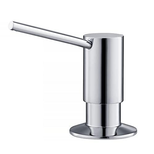This easy-push self-priming solid brass soap dispenser is the perfect complement for your kitchen faucet. The large-capacity bottle holds your choice of liquid soap, lotion, or detergent, and refills from above the counter for maximum convenience. A threaded connection makes installation easy, with a tight waterproof seal to protect against leaks. The heavy-duty pump rotates 360 degrees so you can position the nozzle anywhere you need it. The universal design complements any decor style and coordinates with all Kraus kitchen faucets. Customize the look with your choice of flawless rust-resistant finishes.