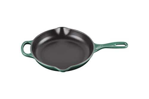 The enameled cast iron Signature Skillet is a versatile kitchen essential for searing, sauteing, stir-frying and more. The interior surface is finished with a black satin enamel that eliminates the need for the traditional seasoning and maintenance of raw cast iron. Specially formulated for higher surface temperature cooking, the enamel develops a natural patina over time making it virtually nonstick and easy to clean. Individually crafted by French artisans from the finest quality materials since 1925, Le Creuset enameled cast iron cookware is beloved for its perfected design and exceptional heat retention that produces superior results from stove to oven to table. Designed for generations of durability, the porcelain enamel requires no seasoning, minimizes sticking and is dishwasher-safe.