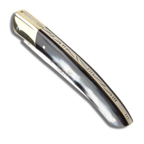 Closed length : 12 cm One brass bolster Black Horn Handle Made in France Delivered in brown box with certificate of origin and guarantee The commission of the coute de Tie (Thiers Cutlers), originally founded in 1582, produced a charter of quality for knife-making. Inspectors verify that this charter is still respected in todays production.
