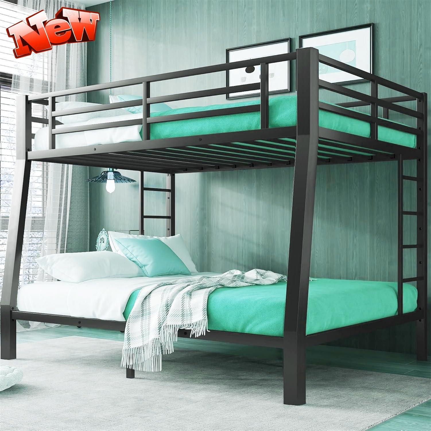 - Industrial style --- The heightened guardrails and reinforced ladder will provide you with more safety protection. Bunk Twin XL/Queen: Dimension: 83" x 63" x 65"H, Upper Bed Requires XL Twin Mattress: 39"W x 80"L. Bunk Full XL/Queen: Dimension: 83" x 63" x 65"H, Upper Bed Requires XL Full Mattress: 54"W x 80"L. Bunk Queen/Queen: Dimension: 83" x 63" x 65"H. (Mattresses are not included). Classic black metal frame, which fully shows the modern industrial style.