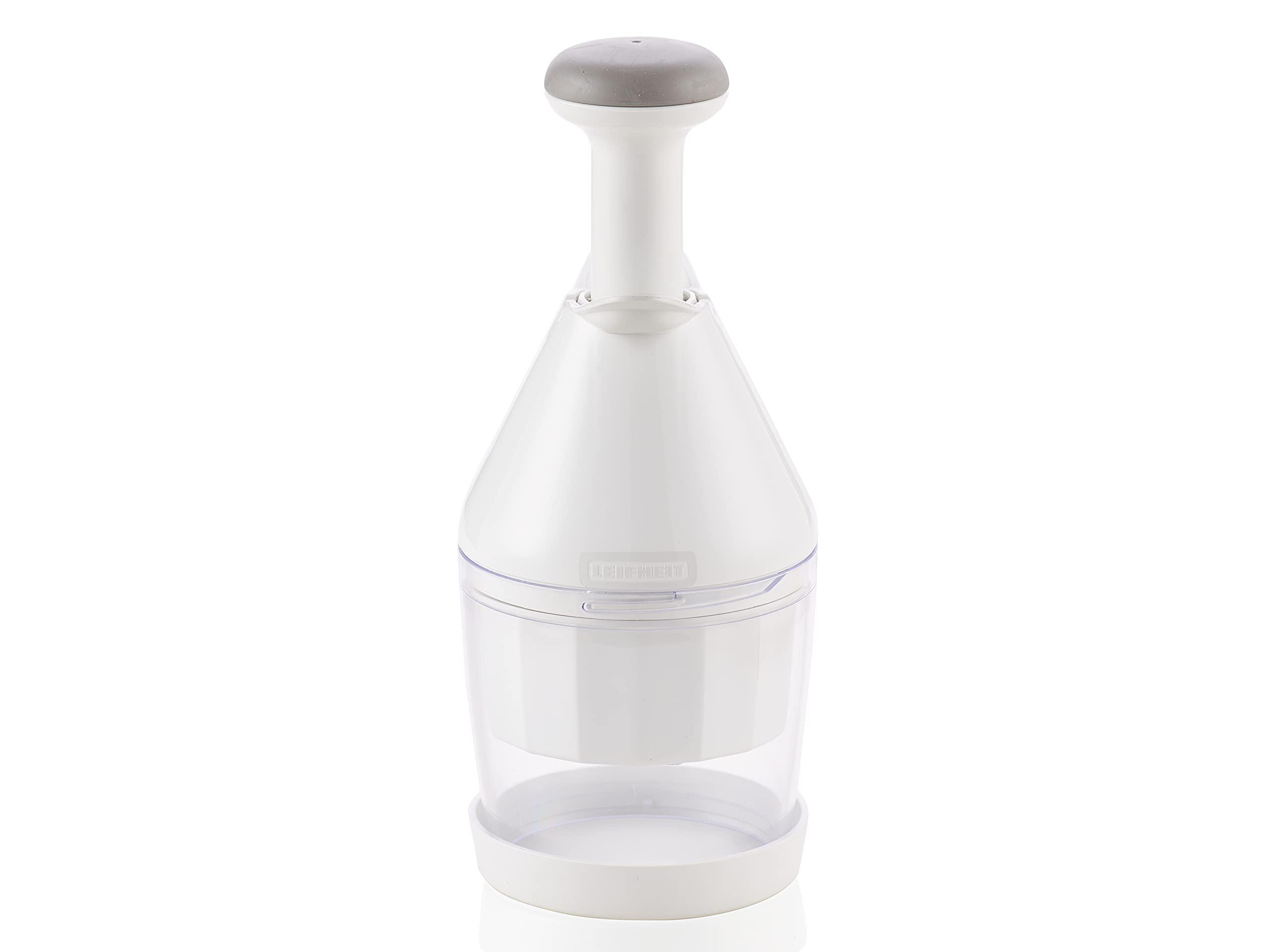 Leifheit Comfort Food Chopper makes chopping all food easy and fuss-free. The push-down soft top press makes the chopper comfortable to use in the palm of the hand. The knob twists and rotates automatically with every press to give an efficient chop to the food.