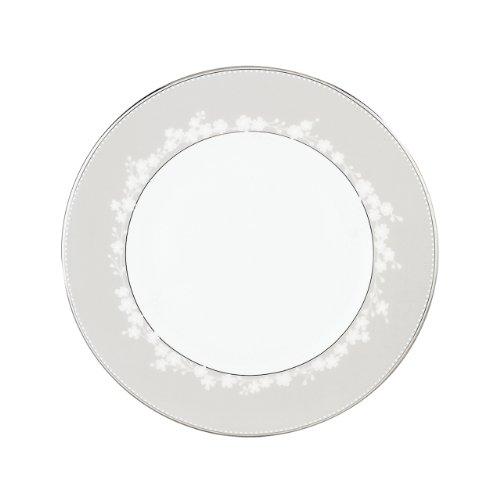 Hand-applied enamel dots grace the center of each flower in the floral motif that graces a wide caf au lait band on each piece. More white dots encircle each piece just inside its platinum rim.
