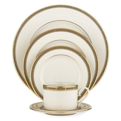 - 5-Piece setting includes dinner plate, salad plate, bread plate, saucer, teacup