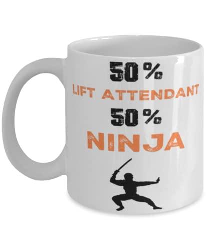 - Celebrate your favorite lift attendant with a unique funny mug! The design features '50% Lift Attendant, 50% Ninja,' making it a memorable gift for Christmas or any occasion that calls for laughter.