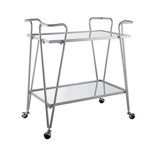 Ideal For Entertaining, This Mobile Cart Is Designed In Classic Mid-Century Modern Style That Will Make Any Gathering Feel Special. Elegant Tubular Steel Construction Is Finished With A Silver Powder Coating That Cradle Two Spacious Shelves. Both Shelves Are The Same Size, Feature A Mirrored Top And Are Surrounded By A Slight Lip So Items Will Not Roll Off. Casters Have A Matching Silver Hood With Black Wheel And Once The Cart Is Rolled Into Place, Locks Keep It Stationary. More Than A Bar Cart, Bring Elegance To Breakfast Or Coffee Service In The Morning Or Use As An Accent Piece that'shows Off Collectables Or Art Pieces.
