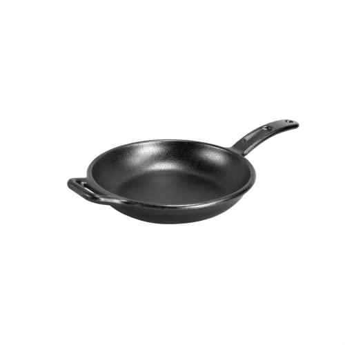 - 10 INCH CAST IRON SKILLET: Seasoned and ready to use, this multitasking cast iron skillet features modern handles and sloped sidewalls for flipping, sizzling, sauteing, and stirring.