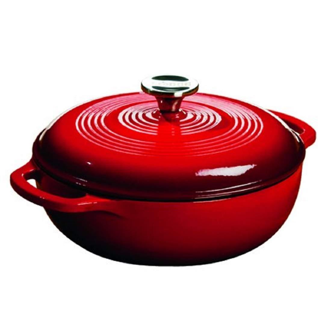 Lodge 3 Qt. Enamel Cast Iron Island Spice Dutch Oven EC3D43 - EC3D43 - Lodge Mfg Lodge Mfg EC3D43 3 Qt. Enamel Cast Iron Island Spice Dutch OvenLodge 3 Qt. Enamel Cast Iron Island Spice Dutch Oven EC3D43 - EC3D43 - Lodge Mfg3 Quart9-3/4" Dia.Cast Iron (Hand Wash Only - Do Not Use Dishwasher) Colored EnamelIsland Spice (Gradated Red)Capacity: 96 Oz Lodge Cast Iron Cookware 6004370, EC3D43, 075536-46143-4, 261-EC3D43, 530EC3D43, 075536461434