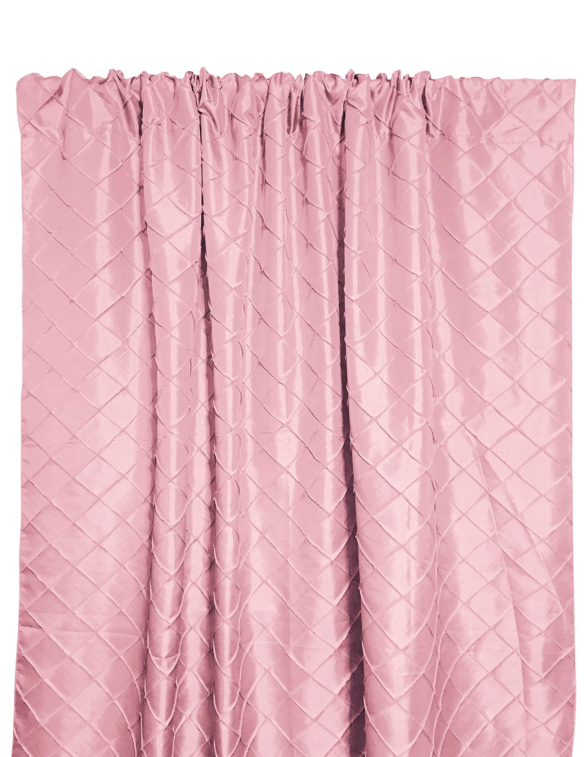 Light weight polyester pintuck taffeta fabric with a cross stitch diamond pattern look sewn into a window curtain or backdrop panel. Each panel is 54" wide and comes with a 4 inch pocket at the top for easy curtain rod/ tension rod insert. Home window, bedroom window decoration.
