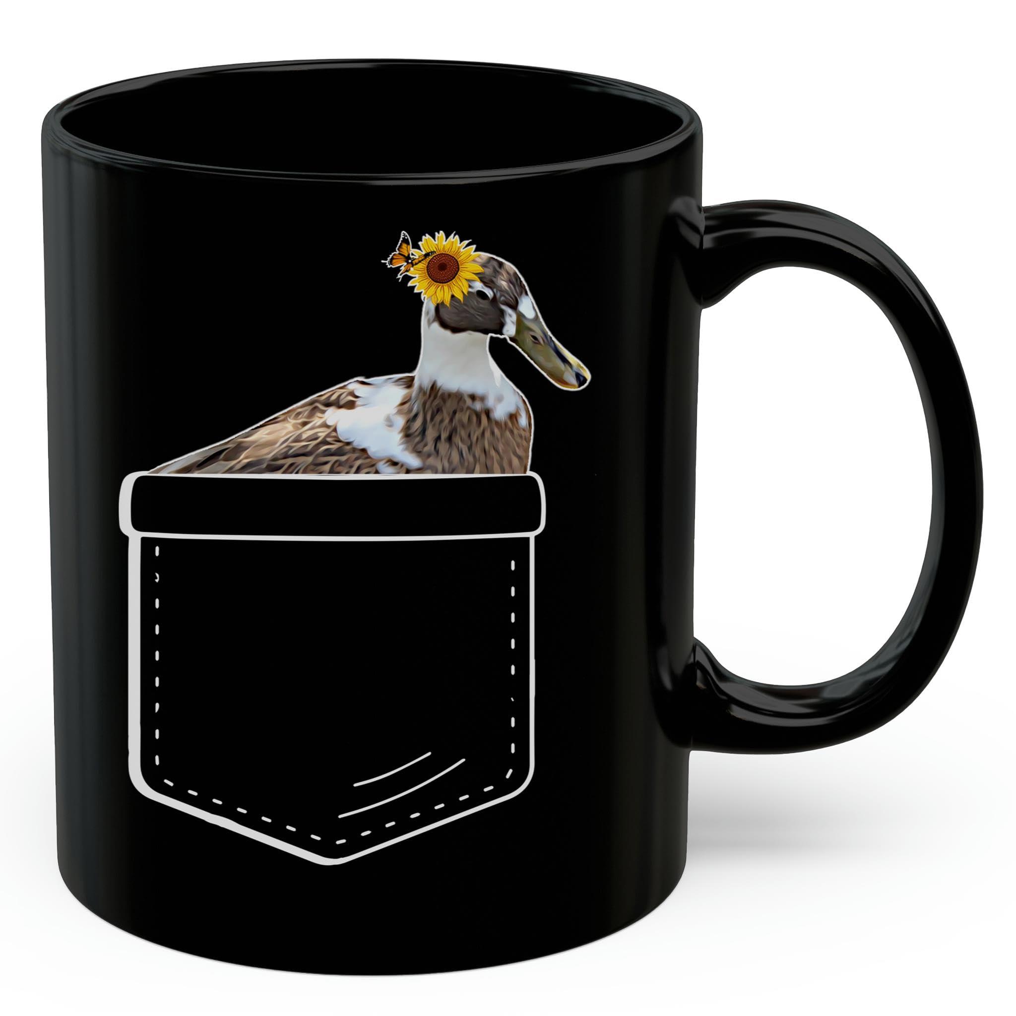 Lovesout Lovesout Ancona Duck Sunflower Pocket Design Coffee Mug Black Ceramic 11oz Farm Owner Gift