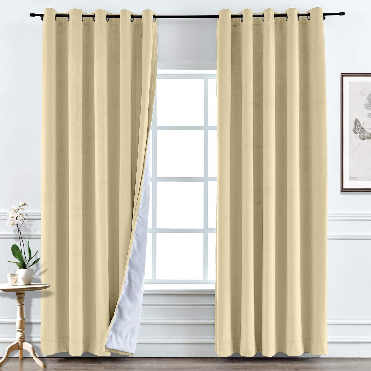 - MULTIPLE FUNCTIONS : The unique porousity properties of velvet give our curtains better insulation and sound insulation, blocks out 80%-95% unwanted light (Darker color works better in blocking light), Lined sewing way guaranteed these draperies are natural and breathable, no ugly chemcial coating, safe to environment.