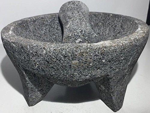 This is the black stone Piedra Negra model which even-though it is grey color as pictured it will little by little become darker as you use it. This model is better quality than normal molcajetes because you can put it in the oven and the heat from the oven will not damage it. They are hand made and some have little extra things on them like a little partial face or tail of a pig and some don't. They come mixed in a batch directly from Mexico so we can't pick and choose. They are all round as pictured though. When it comes to guacamole Mexican's are the experts. You can not buy a Chinese made guacamole maker and expect an authentic taste or experience. This is made in mexico from the volcanic granite lava and according to mexican chefs every time you make food it it, a little bit of the stone taste gets mixed with the food which gives it the special authentic taste. This will make a great party show off piece as well as a great device for your kitchen to make authentic mexican foods.