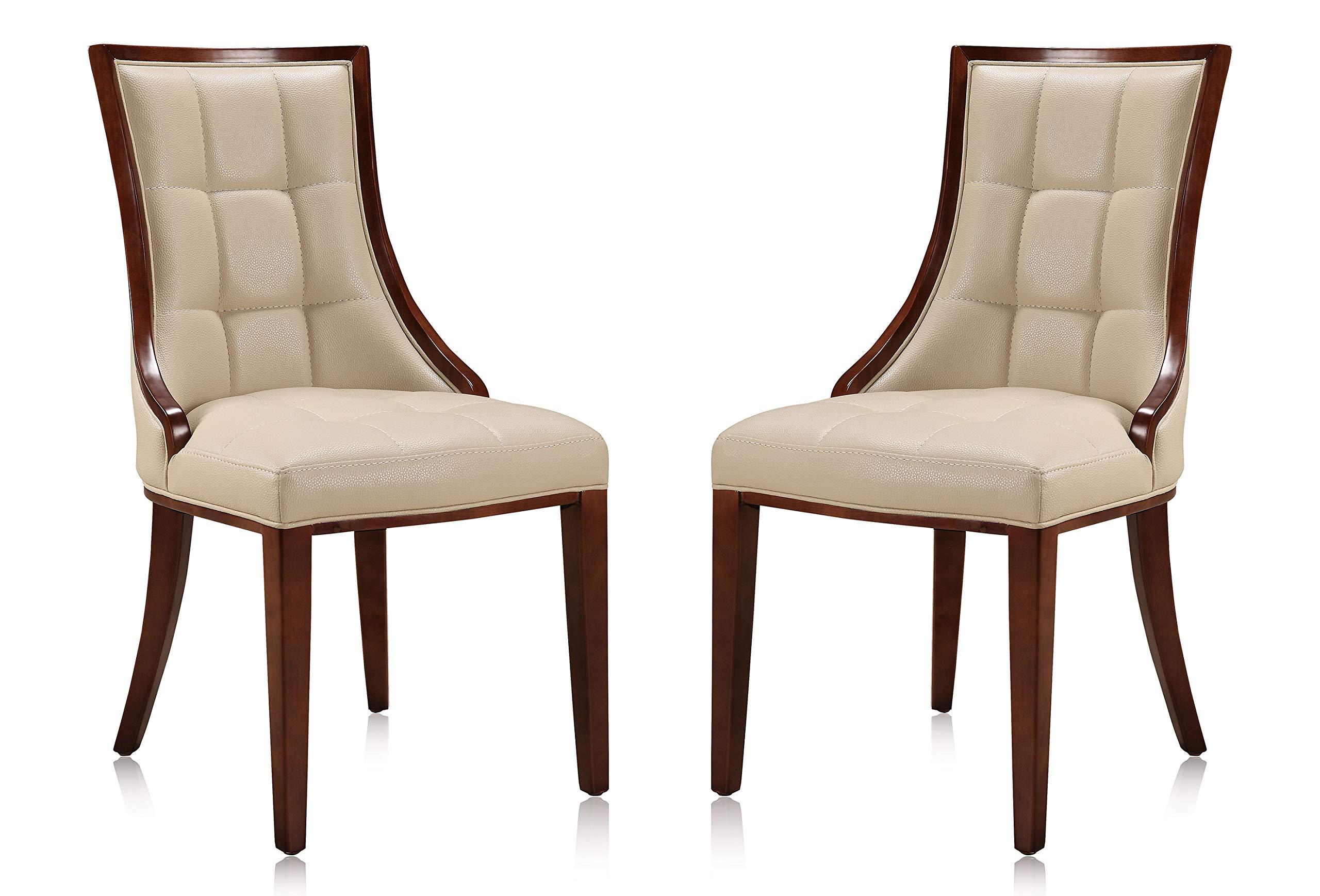 - ELEGANTLY SIMPLE: Traditional parsons chairs get a chic custom look accented by fine rectangular plush stitching on the seat & back, distinct wing back design & tasteful cream faux leather upholstery