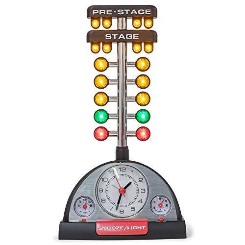 - Drag Racing Winning Alarm Clock features a replica of the "Christmas tree" from the drag strip, providing a pulsating wake up call