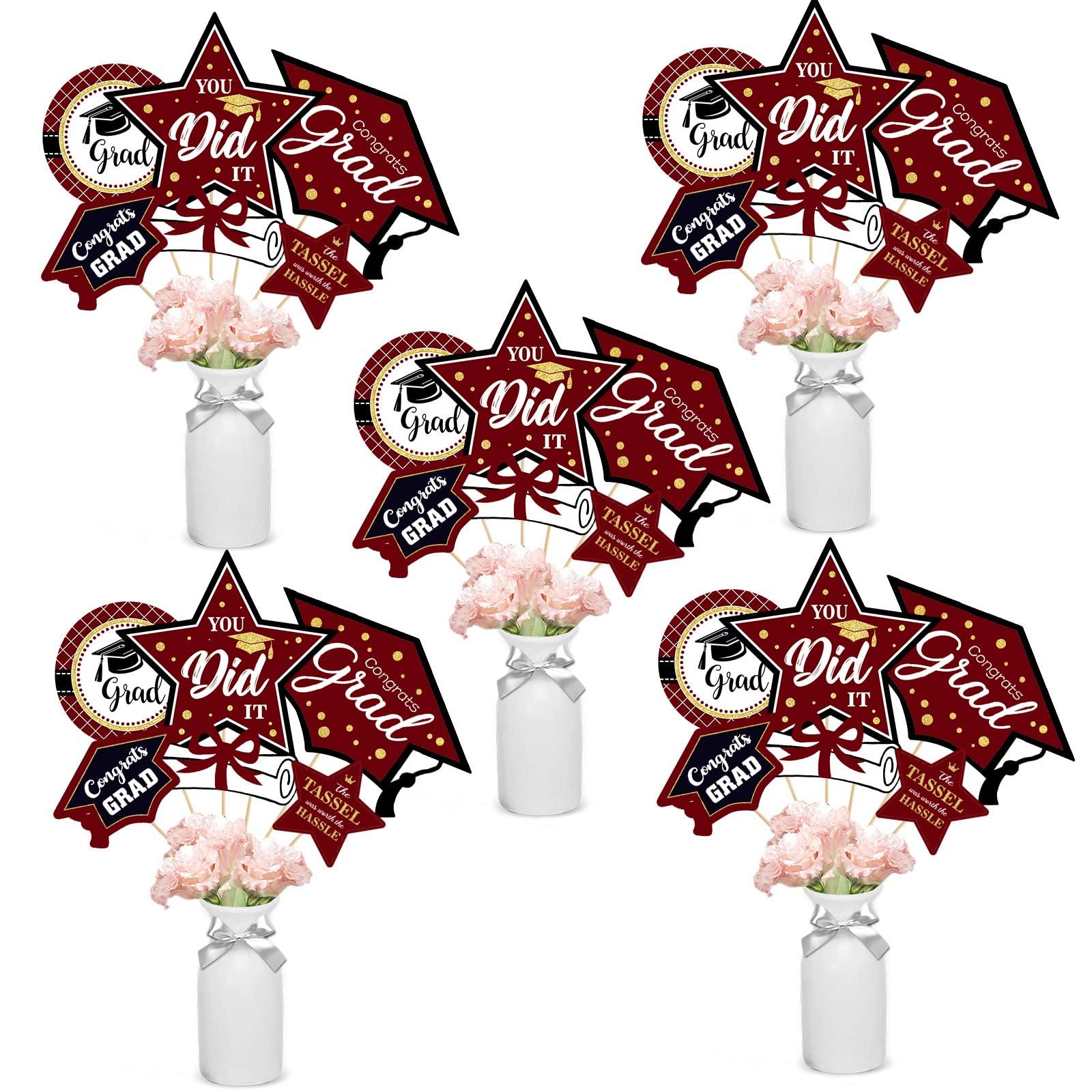- Widely Usedgraduation party table decoration set is perfect for a maroon grad party, You can use them as table topper centerpieces decor, graduation photo booth props, wall decorations, photographic accessories,graduation party favor supplies, grad party ideas for High school or college.