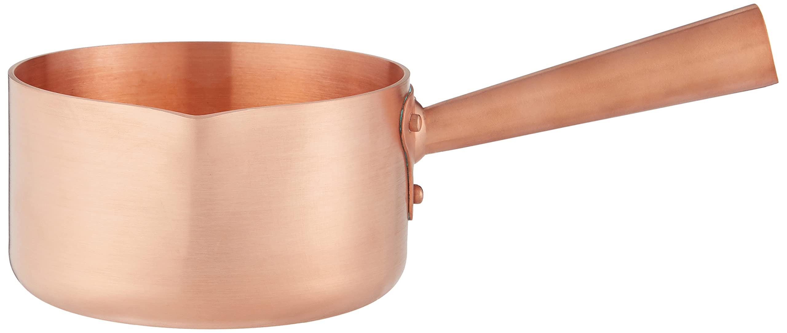 - Secure riveting. Copper fixed long riveting will keep handle cold; however pan needs to be used with great caution because of the high temperature that the sugar will take caramelizing