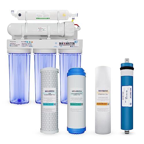 - Great tasting water: Max Water standard 5-Stage Reverse Osmosis RO Drinking water filter system, effectively filter out impurities. Filters down to 0.0001 micron.Experience fresher healthier baby formula,tea and coffee,better tasting foods and crystal clearer ice cubes, good taste.