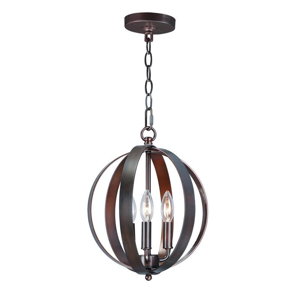 Collection: Provident, Material: Steel, Finish Color: Oil Rubbed Bronze, Width: 12", Height: 14.5", Length: 12", Hanging Method: Rod and Chain, Chain Length: 36", Lamping Type: Incandescent, Number Of Bulbs: 3, Wattage: 180 Watts, Dimmable: Yes, Moisture Rating: Dry Rated, Desc: Offered in a variety of shapes and sizes, the Provident collection offers a trending style at value engineered pricing. The pivoting metal bands in your choice of Oiled Rubbed Bronze or Satin Nickel are available in sizes that fit many coordinating locations. Canopy Included: Yes / Canopy Diameter: 4.75 / Chain Length: 36.00 / Dimmable: Yes. ,