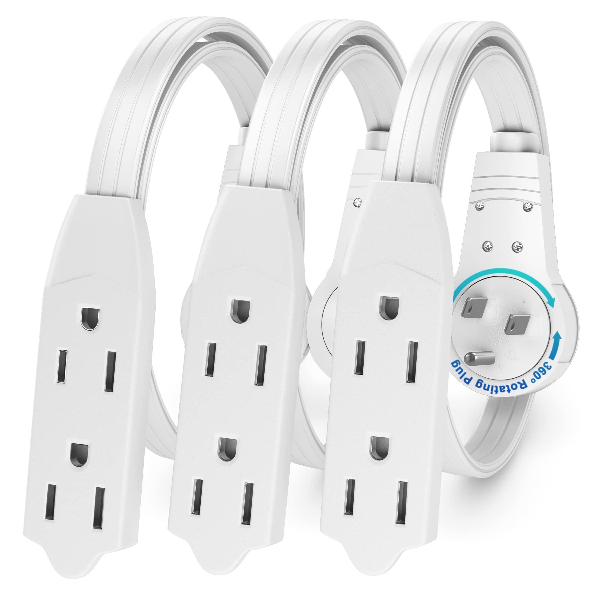 Maximm Maximm Cable 1 Ft 360 Rotating Flat Plug Extension Cord/Wire, 16 AWG Multi 3 Outlet Extension Wire, 3 Prong Grounded Wire - White - 3 Pack - UL Certified