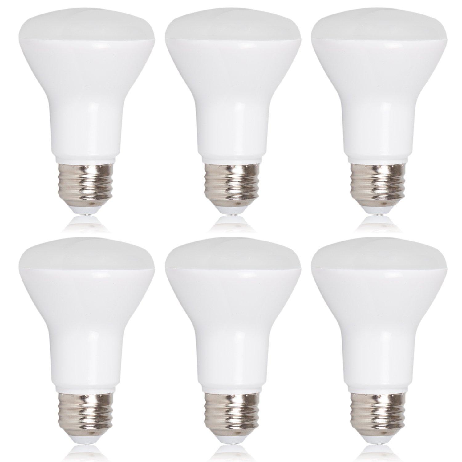 This warm white dimmable R20 BR20 LED light bulb gives off 600 Lumens and only consumes 7 Watts of energy compared to 50 Watt incandescent light bulbs. This is perfect for track or recessed applications throughout any residential or commercial building. This recessed light bulb has an E26 base allowing you to easily screw it into most standard sockets. This 6-pack of light bulbs is suited for kitchens, living rooms, bedrooms, offices, basements and more. They have 25,000 lifetime hours, are UL listed and are backed by Maxxima for 3 years.