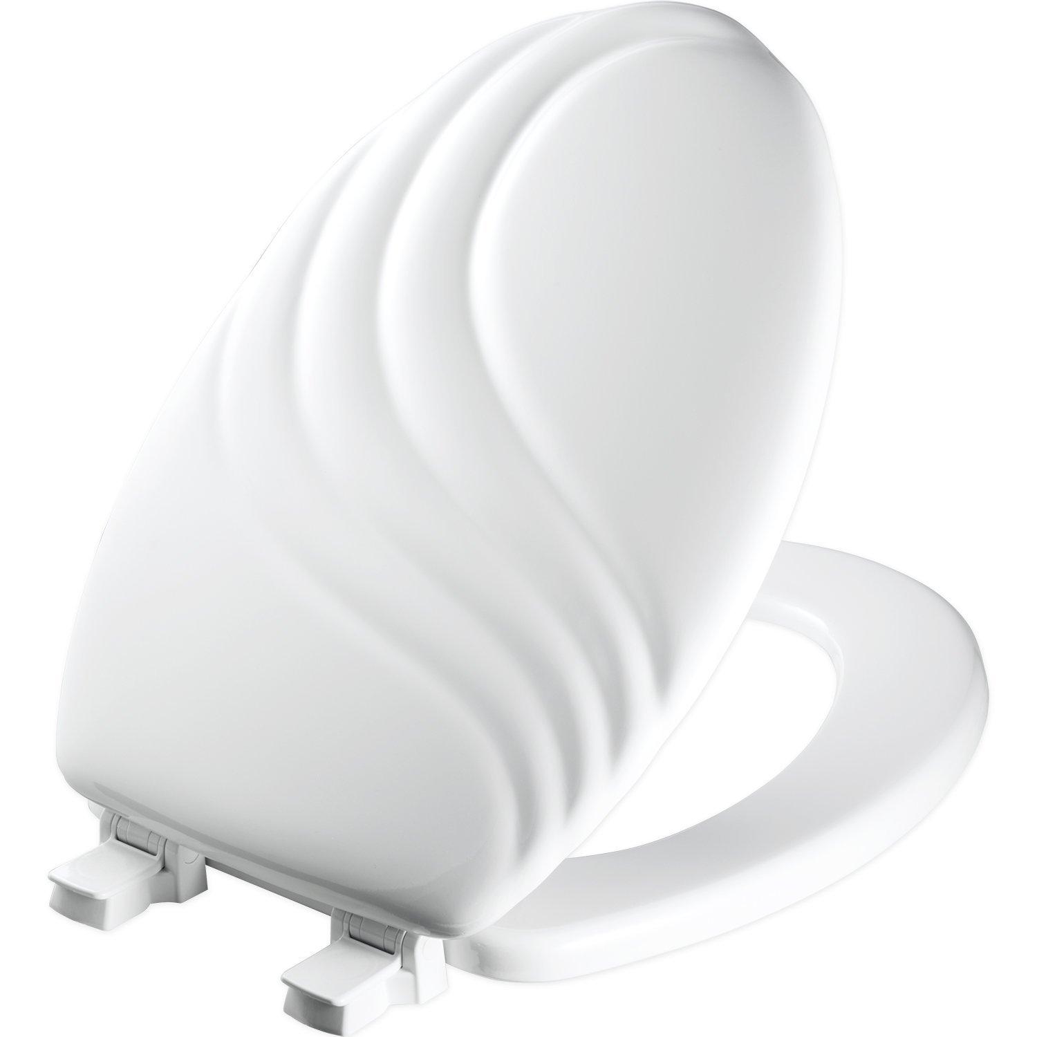 This Mayfair durable molded wood toilet seat with its exculsive sculpted design and smooth high-gloss finish molded wood provides the look of ceramic with durability that resists chips and scratches. It features the Easy Clean & Change hinges to remove seat for easy cleaning and replacement. With the innovative STAY-TITE Seat Fastening System, the seat does not shift around and stays firmly attached to the toilet bowl. This seat is proudly made in Sheboygan Falls, Wisconsin, USA and fits all manufacturers' elongated bowls in the US and Canada. NOTE: Colors on a website or printed from a website can vary drastically from the actual color of the toilet seat due to monitor and printer settings. The colors on this page are for approximate visual use and should not be used to match colors exactly to a toilet bowl.