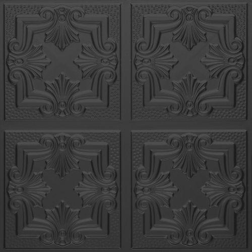 Take your ceilings from boring to brilliant with M-Boss Inc. embossed metal ceiling tiles! Sized for 1 person install. The tile itself is 24" x 24", and the pattern within the tile repeats every 12 inches. The Satin Black finish will arrive pre-coated and ready to install. The black coating can also serve as a primer for any latex-based top coat. Installation is simple-fasten a sheet of 3/8 plywood to the joists of your ceiling, and then nail your panels to the wood substrate! You can use nails from your local hardware store, or order our decorative conehead nails. Tiles cut easily with tin snips. Tiles are heat-resistant and safe around moisture. To clean, just wipe with a mild cleaner (such as Windex) and a non-abrasive towel.