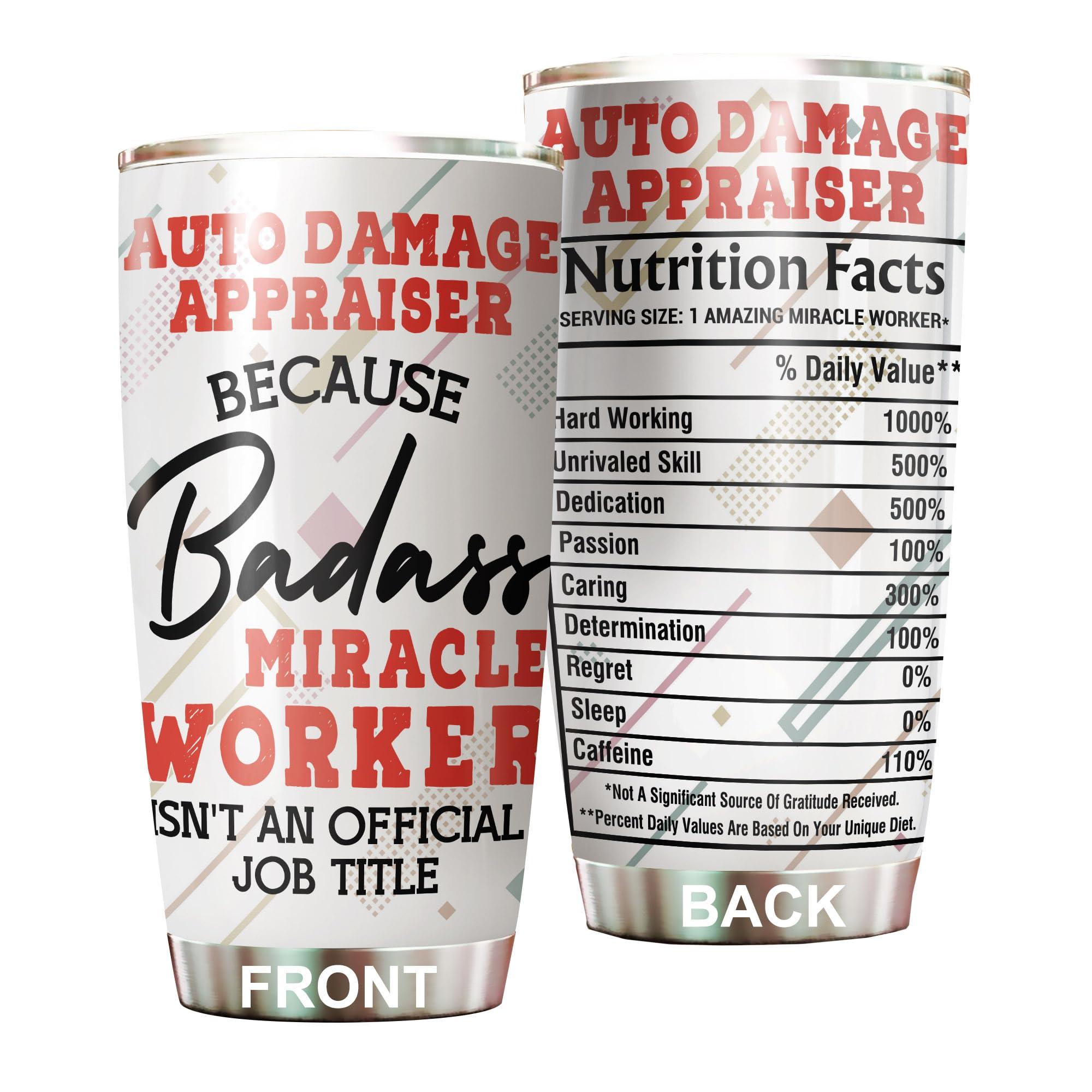 MEDROC Miracle Worker Nutrition Facts Auto Damage Appraiser Tumbler Stainless Steel 20oz, Funny Gifts Bulks For Office Women Men Work Friend Coworker, Driking Coffee Cup For Birthday Christmas