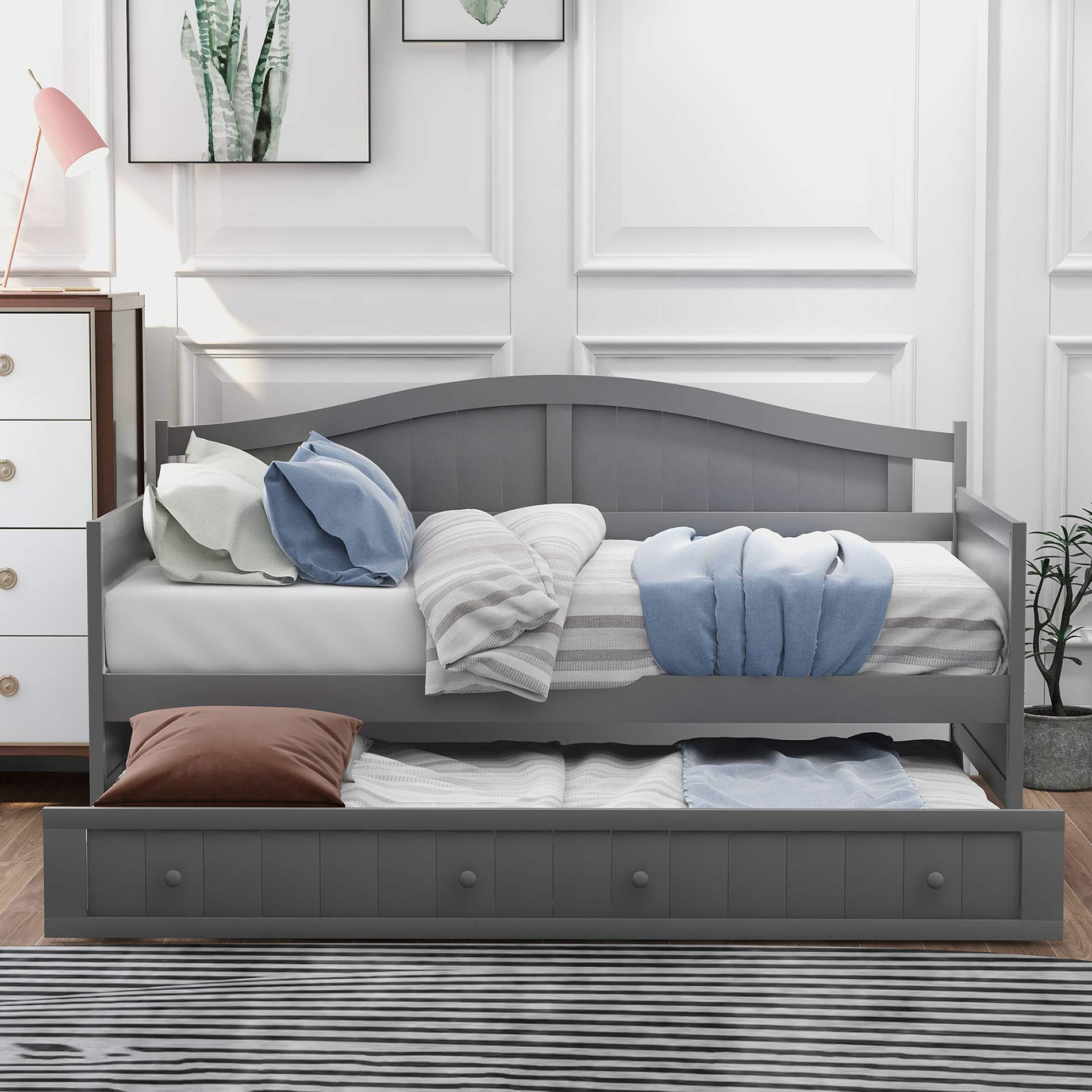 - This twin daybed comes with a trundle, easy to pull in and out ,multi-functional piece of furniture ideal for small living spaces. The daybed and trundle will each support a twin-size mattress.