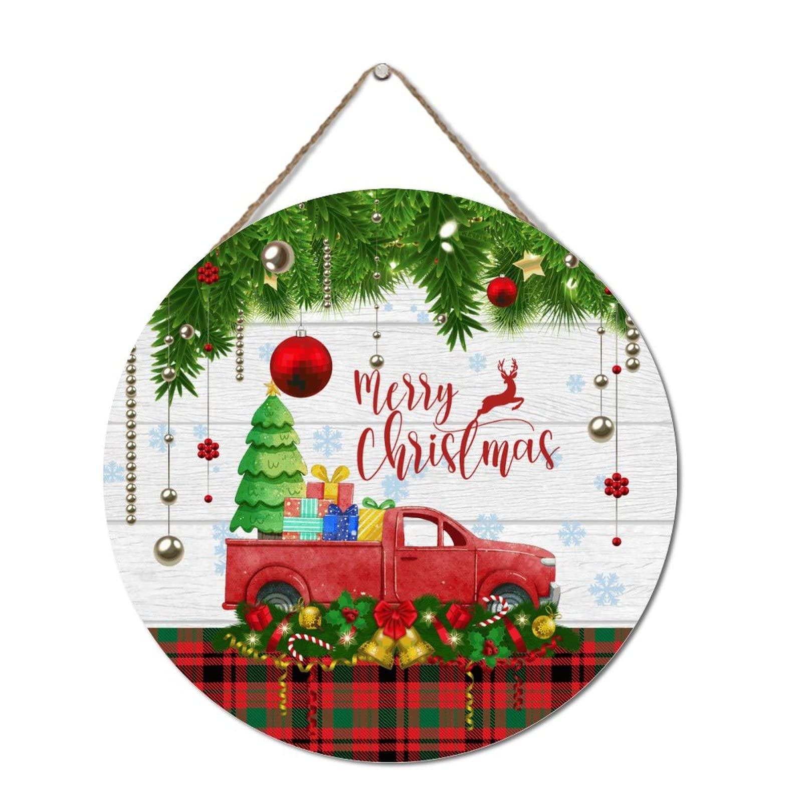 - Print: The Christmas Decor Red Truck with Tree Merry Christmas hanging wood sign look with distressed design adds charm to any room of the house.Great for yourself or makes a great gift for friends or family!
