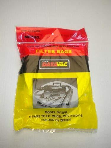 The MetroVac DV-5PBRP 120-516736 Standard Replacement Bags are used for the DataVac MDV-2, MDV-3 vacuums/blowers and DV-3 ESD safe maintenance systems. Disposable paper bags are sold five per package.