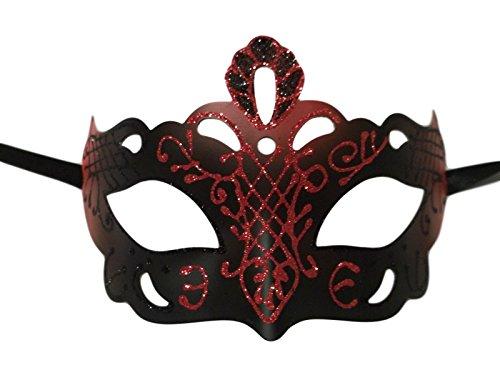 Plastic Masquerade Mask Red with Black Glitter. Not bendable, measures about 4 x 7. Perfect for men or women.
