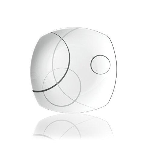 Mikasa Geometric Circles is a flowing design of circles and curves on a soft square shape. The free flowing design inspires a serene calm in a trendy geometric design. Crafted from a special blend of porcelain and bone ash, which creates superior quality china with a light and fine body, high quality chip resistance, exceptional strength and durability. Geometric Circles features a coupe shape and mica detailing for a look you can live with everyday or dress up for special occasions. Both dishwasher and microwave safe, this salad plate has an 8-1/2 inch diameter.