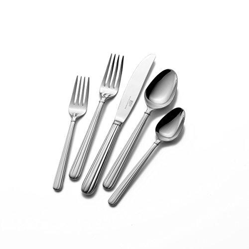 With tapered, fluted handles that recall Roman columns, this 18/8 stainless-steel flatware is both handsome and practical. It wears a lustrous mirror finish yet goes safely through the dishwasher without needing polishing. The five-piece place setting consists of a dinner fork, salad fork, soupspoon, teaspoon, and knife. The pieces feel substantial and well balanced in the hand and are classy enough to use for entertaining. --Fred Brack