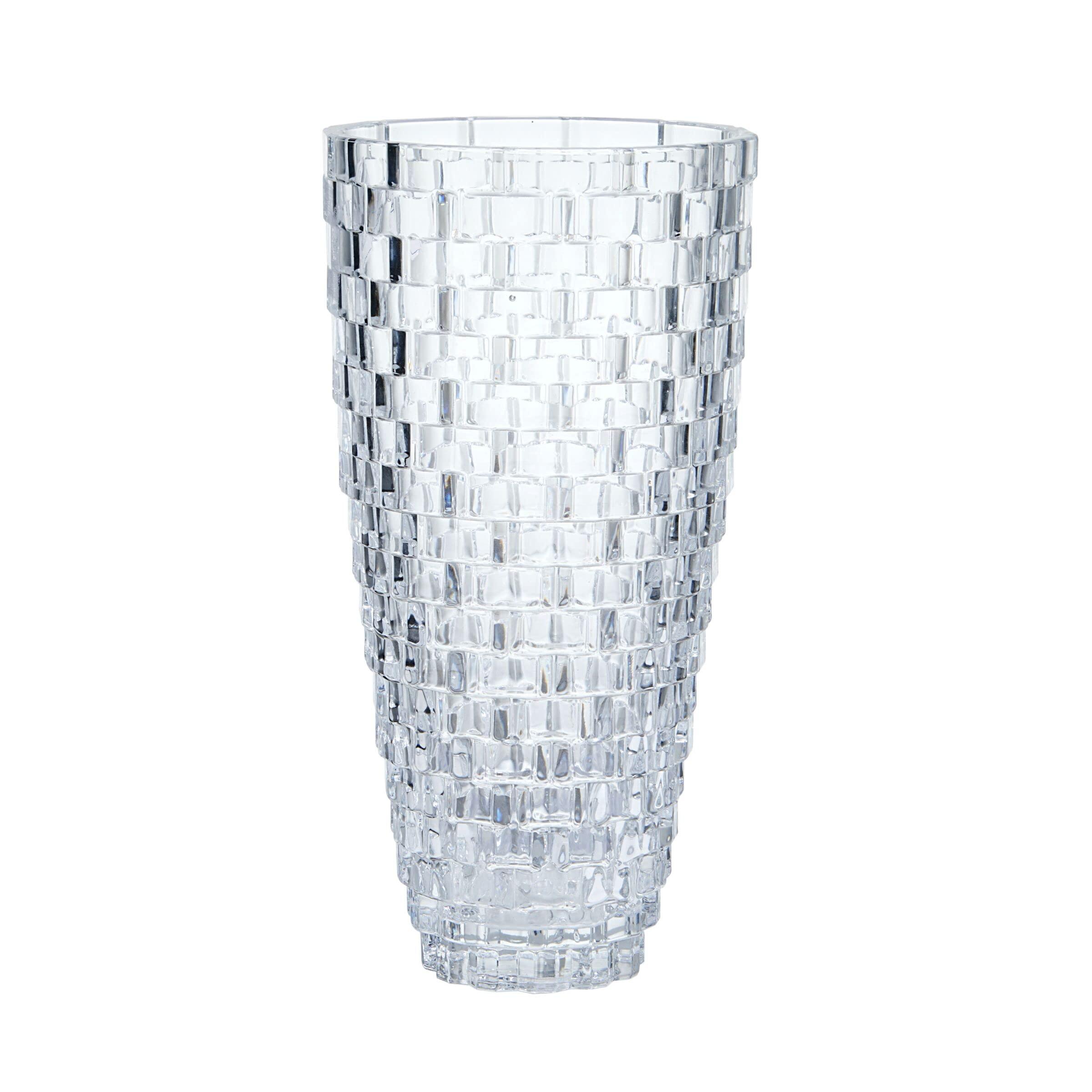 The Palazzo collection features a beautiful basket weave design that sparkles in the light and will add a touch of elegance to your home. Classic and clean look; these pieces are timeless beauties. This crystal Vase is a lovely way to display fresh or dried flowers and also makes a great hostess gift. Come in a Mikasa photo gift box. Constructed of crystal. Dishwasher safe. Do not use in microwave. Crystal glass Vase has a 6 inch diameter rim and measures 12 inch high.