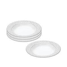 Crafted of porcelain. Dishwasher safe but not microwave safe. Set of 4 rim soup bowls, each measures 8-1/2 inch diameter and holds 12 ounces.
