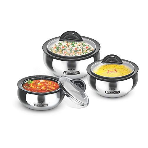 Carry your full lunch or dinner items in this functional set of three insulated casseroles. Eating hot and fresh food is everyones desire and this casserole with a stainless steel interior and plastic outer body retains heat effectively for long periods of time. This effective heat retaining casserole from Milton can make life much easier for you and your family on hectic days. The insulated set of casseroles come with stainless steel and toughened glass construction to retain maximum heat for a long period of time. Hence, this set can also be an ideal companion for any family picnic or outing. Adding to its list of conveniences is its toughened glass lid which is resistant to thermal breakage.