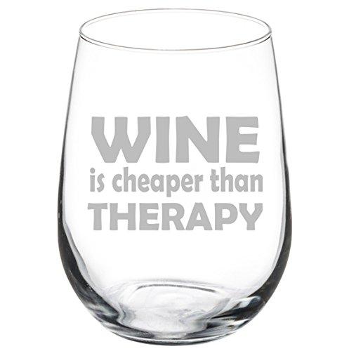 - 17 oz Stemless Wine Glass Funny Wine is cheaper than therapy