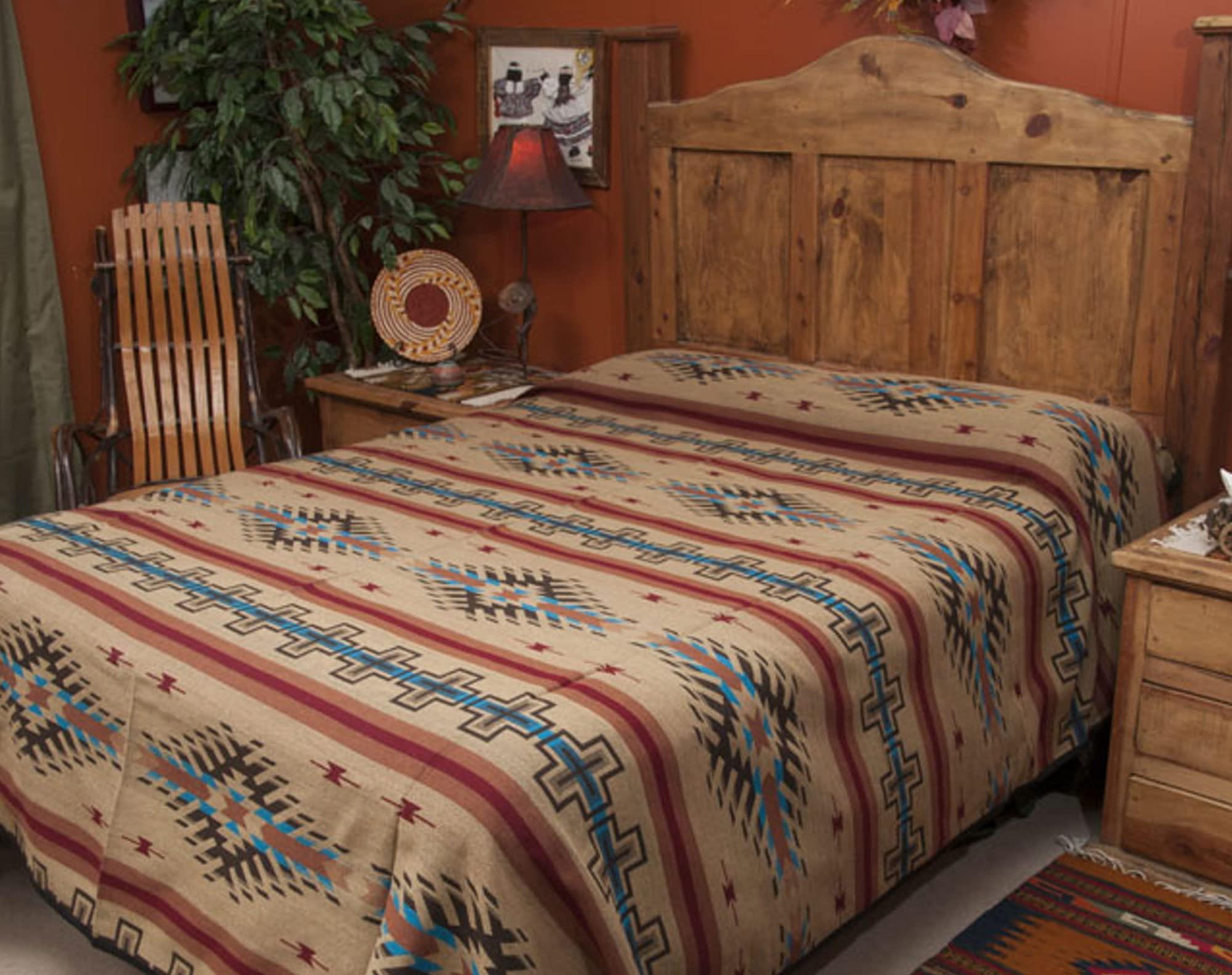 Using traditional Native patterns made so popular by Native American blankets, this colorful southwestern bed spread design is woven, not printed, with soft acrylic thread.