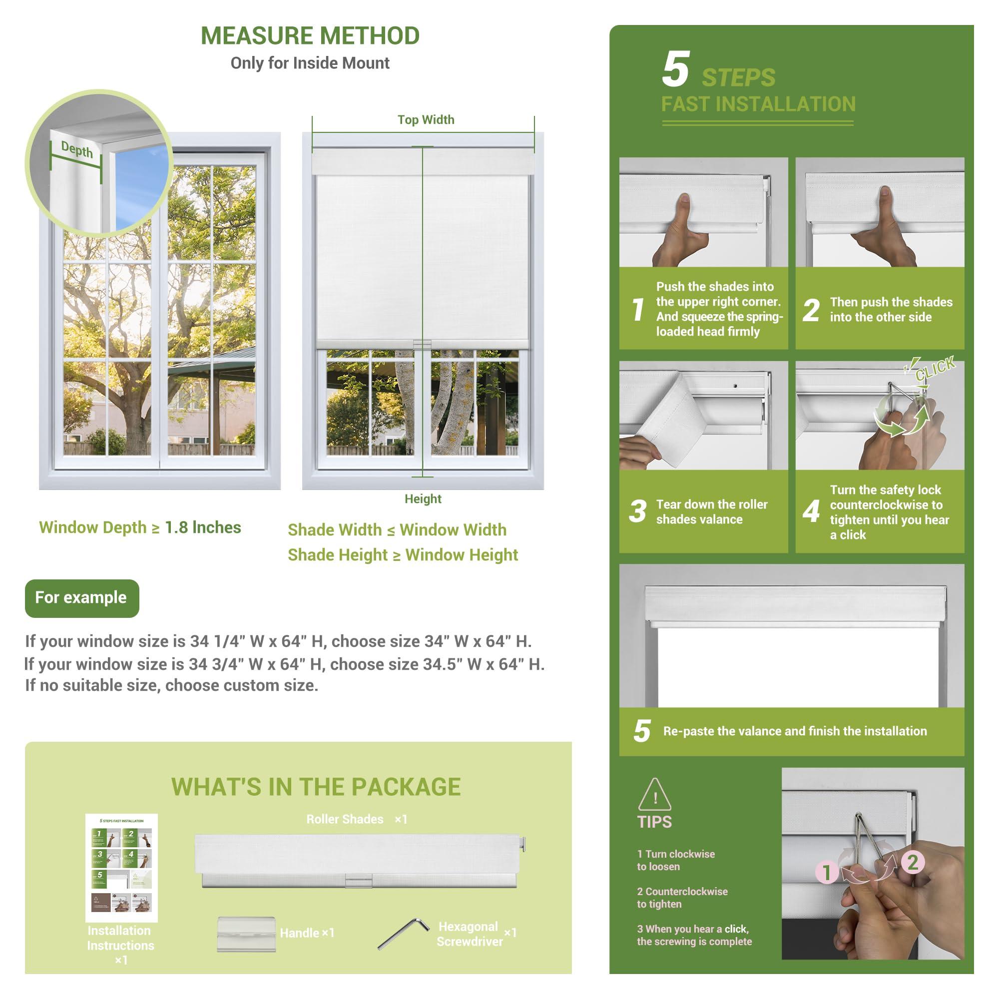 • [Customize Size] INSIDE MOUNTING roller blinds require a minimum 1.8" window frame depth. Please follow the size selection requirements on the page and choose the size closest to your window measurements and we will help you cut it appropriately to fit your window.Chosen size width need to be less than or equal to window width, The Chosen size length need to be more than or equal to the length of the window. If you can't find the size you need on the page, please contact us.