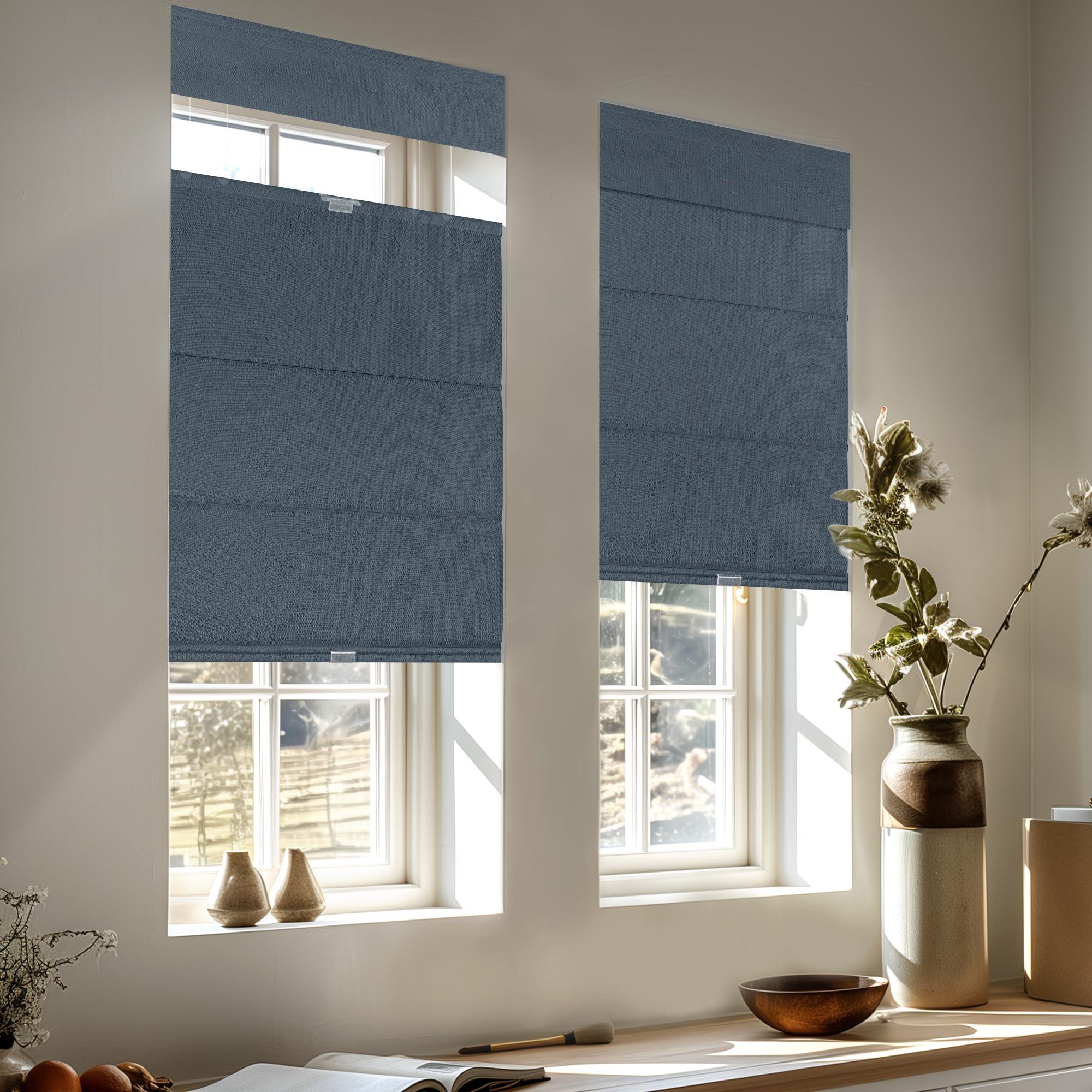 - 100% Blackout & Fabric FunctionThe roman windows blinds is 100% blackout, it can block out the sunlight and protect your privacy. Also the thickened fabric has a noise reduction function and it allows you to have a better quality sleep. The thermal backing balances the temperature, maintaining the indoor temperature during the summer and keeping warm in winter, which helps you cut energy bills.