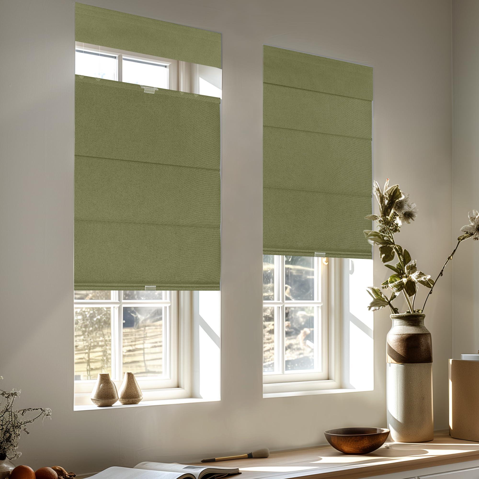 MoDanCeQ MoDanCeQ Top Down Bottom Up Roman Shades for Windows, Blackout Cordless Roman Blinds, Easy to Install Thermal Insulated Window Blind for Kitchen, Green, 31.5" W x 72" H