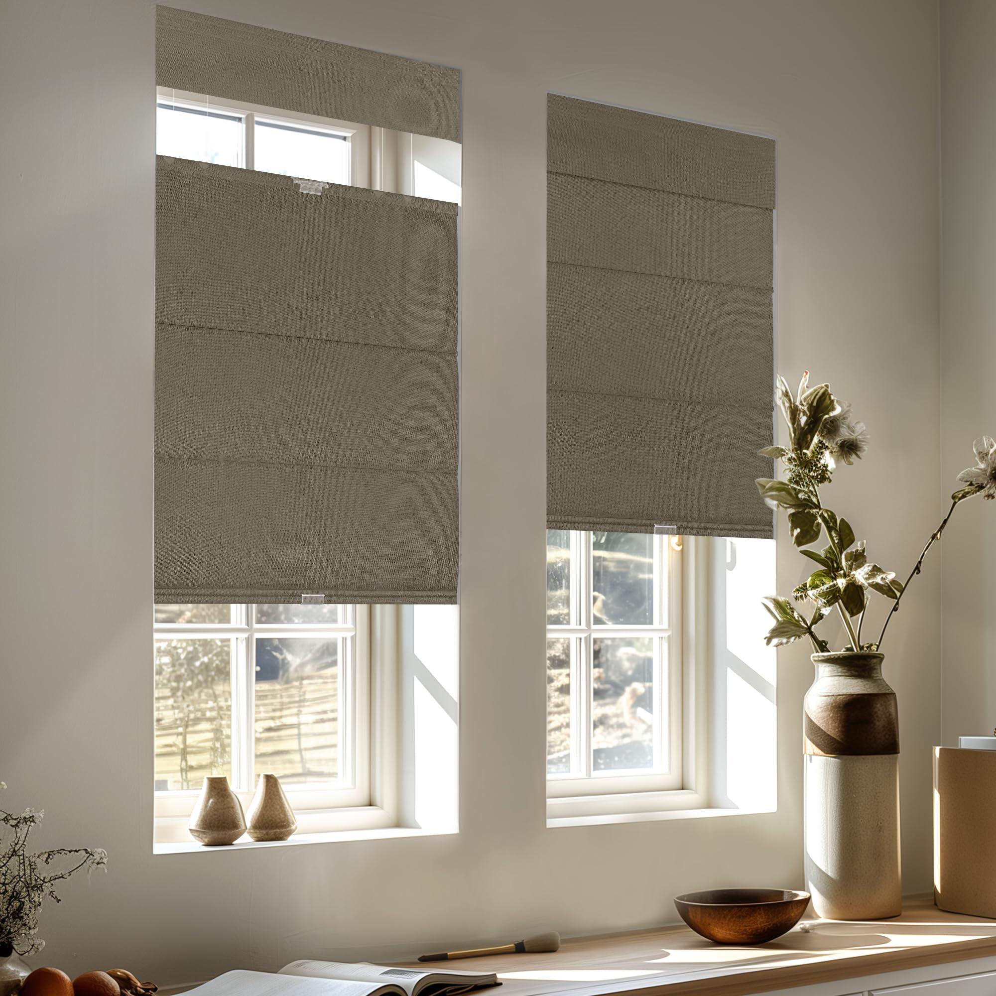 - 100% Blackout & Fabric FunctionThe roman windows blinds is 100% blackout, it can block out the sunlight and protect your privacy. Also the thickened fabric has a noise reduction function and it allows you to have a better quality sleep. The thermal backing balances the temperature, maintaining the indoor temperature during the summer and keeping warm in winter, which helps you cut energy bills.