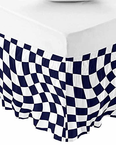 Modern Black Bed Skirt King Size 18 Inch Drop, Adjustable & Elastic Wrap Around Bed Skirts Pleated Luxury Dust Ruffles for Twin Full Queen Cal King Base Bed, Geometric White Checkered Lattice