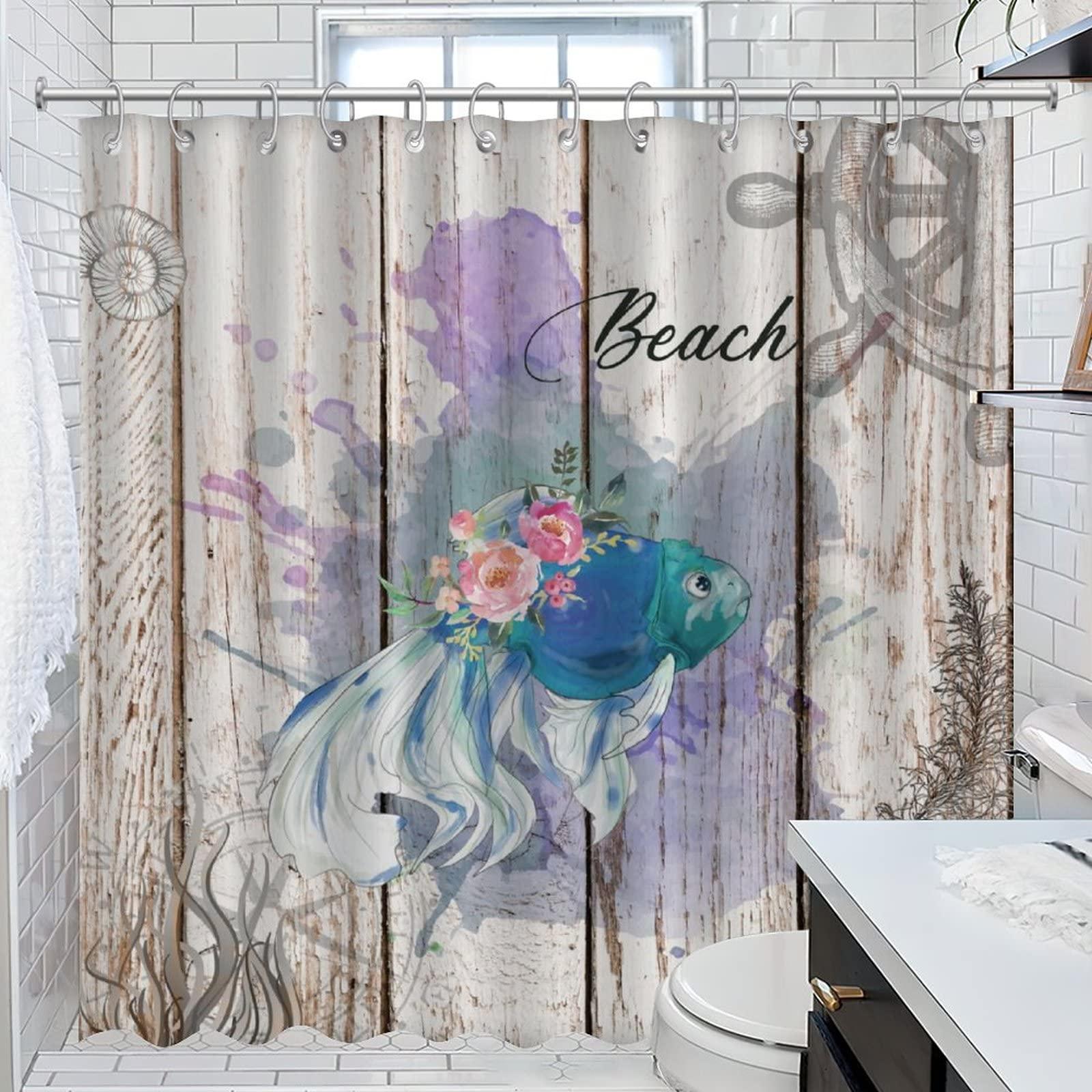 Modern Nautical Beach Ocean Theme Underwater Fish Shower Curtain Polyester Fabric Bathroom Shower Curtain for Bathroom Sea Animal Turtle Octopus Crab Bathroom Curtain Machine Washable 72x72 Inch