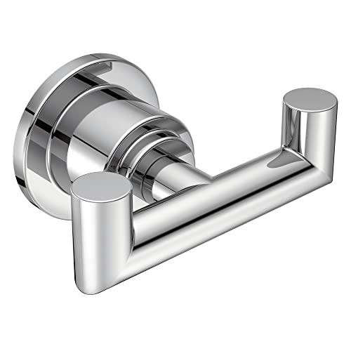 This version comes in a highly reflective chrome finish for a mirror-like look that works with any decorating style, and it's also available in brushed nickel. The robe hook installs easily and it's constructed of zinc. What Sets Moen Apart?
