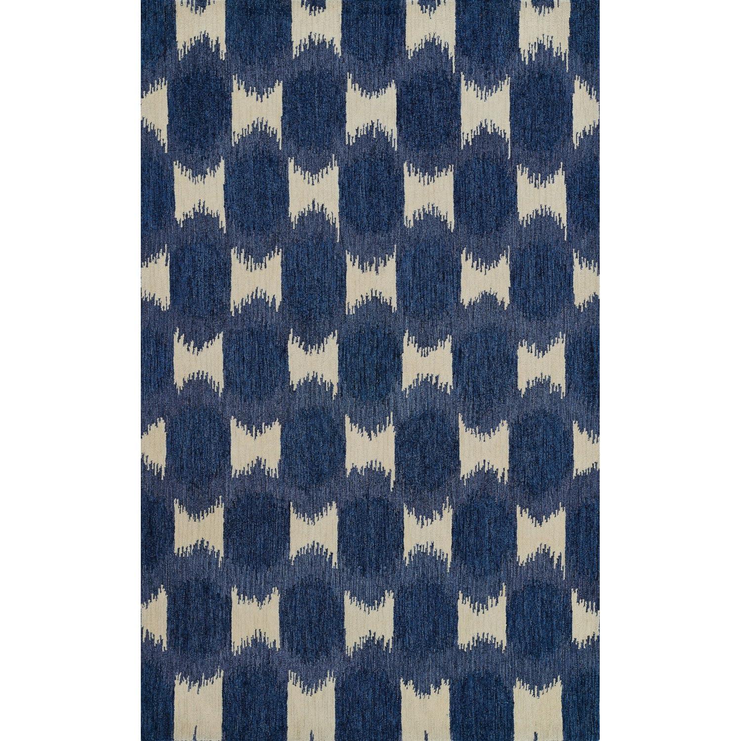 This ikat-esque patterned rug from the Leiden collection brings you a fun, familiar style with beautifully saturated navy tones, to completely cool down the color temperature of your space. Serving you major west coast vibes, this rug is hand tufted from 100% wool, and is both soft on your feet and durable, sure to stand the test of time.