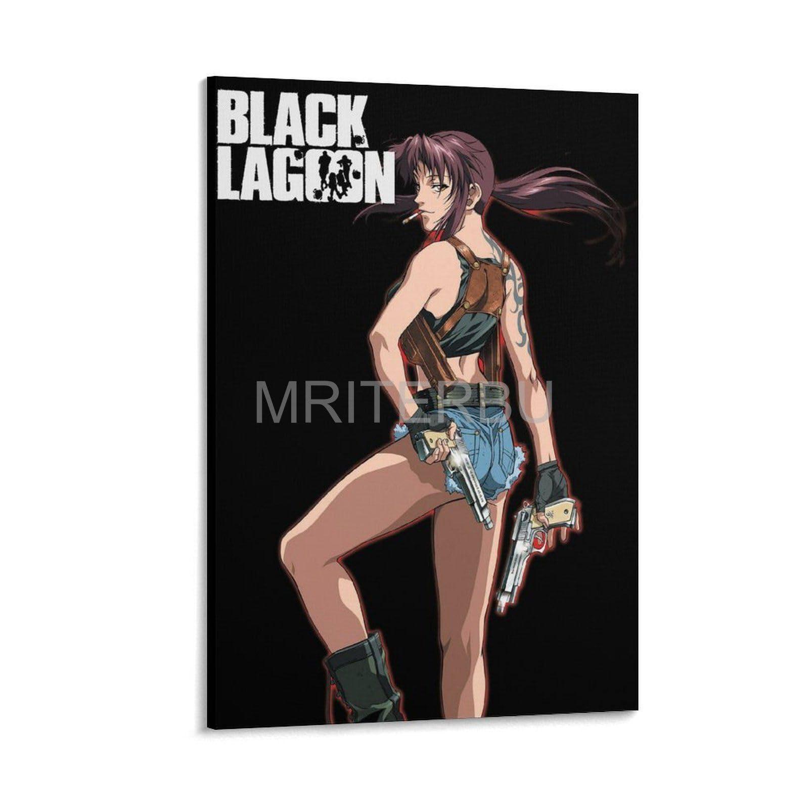 MRITERBU MRITERBU Black Lagoon Poster Revy Poster Anime Poster 4 Canvas Painting Wall Art Poster for Bedroom Living Room Decor 16x24inch(40x60cm), Frame-style