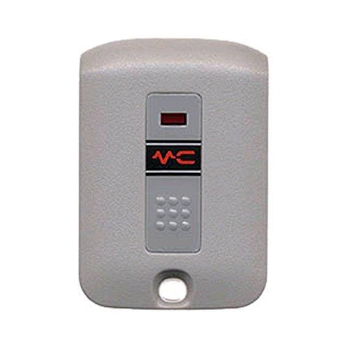This transmitter is a single-channel device, pressing the pushbutton will send a signal to the receiver. The transmitter has a red test/operate indicator and is powered by a 12-volt battery. A molded-in hole in the case is for attaching the transmitter to a key ring.