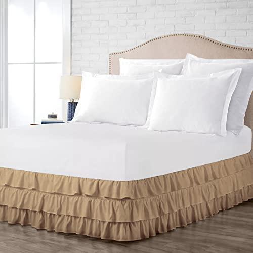 - PACKAGE INCLUDES: 1 Piece Multi Ruffle Bed Skirt Elastic Dust Ruffles With Wrap Around.