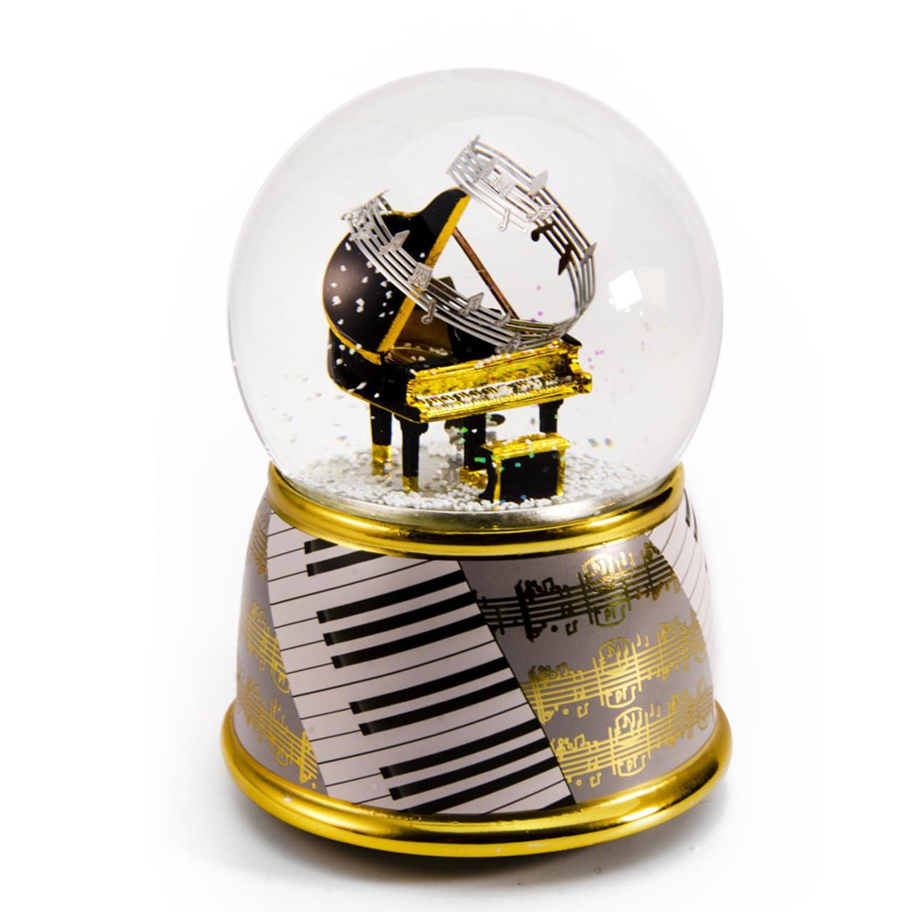 - Inside the glass dome displaces an incredible miniature black and gold grand piano with musical notes flying around